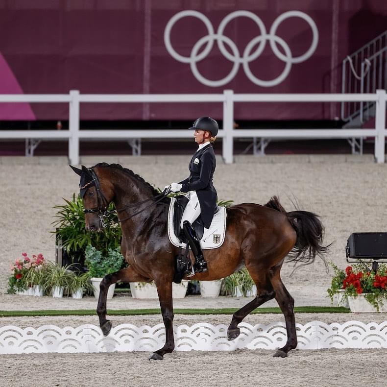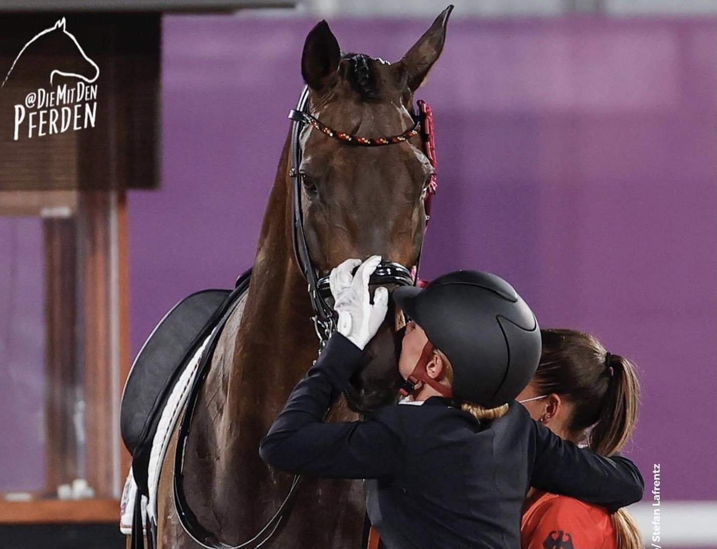 Horses.nl had er ook wel vrede mee gehad als TSF Dalera BB v. Easy Game het wereldrecord van Valegro (94,3%) had verbroken. Want dressuur ziet er met Jessica von Bredow-Werndl en de Trakehner merrie nog makkelijker uit dan met Dujardin-Valegro in het verleden. Maar de zevenkoppige Tokio-jury bleef er onder (91,732%) Maar met Olympisch goud nemen we ook genoegen. Zilver voor Isabell Werth en Bella Rose (89,657%, Brons voor Charlotte Dujardin en de tienjarige Gio (88,543%). Edward Gal komt met de negenjarige Total U.S. v. Totilas op een zesde plaats (84,157%) uit. Achter Cathrine Dufour en Bohemian v. Bordeaux(87,507%) en Sabine Schut-Kery en Sanceo (84,3%).