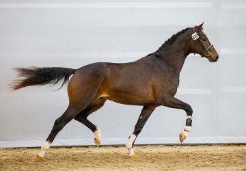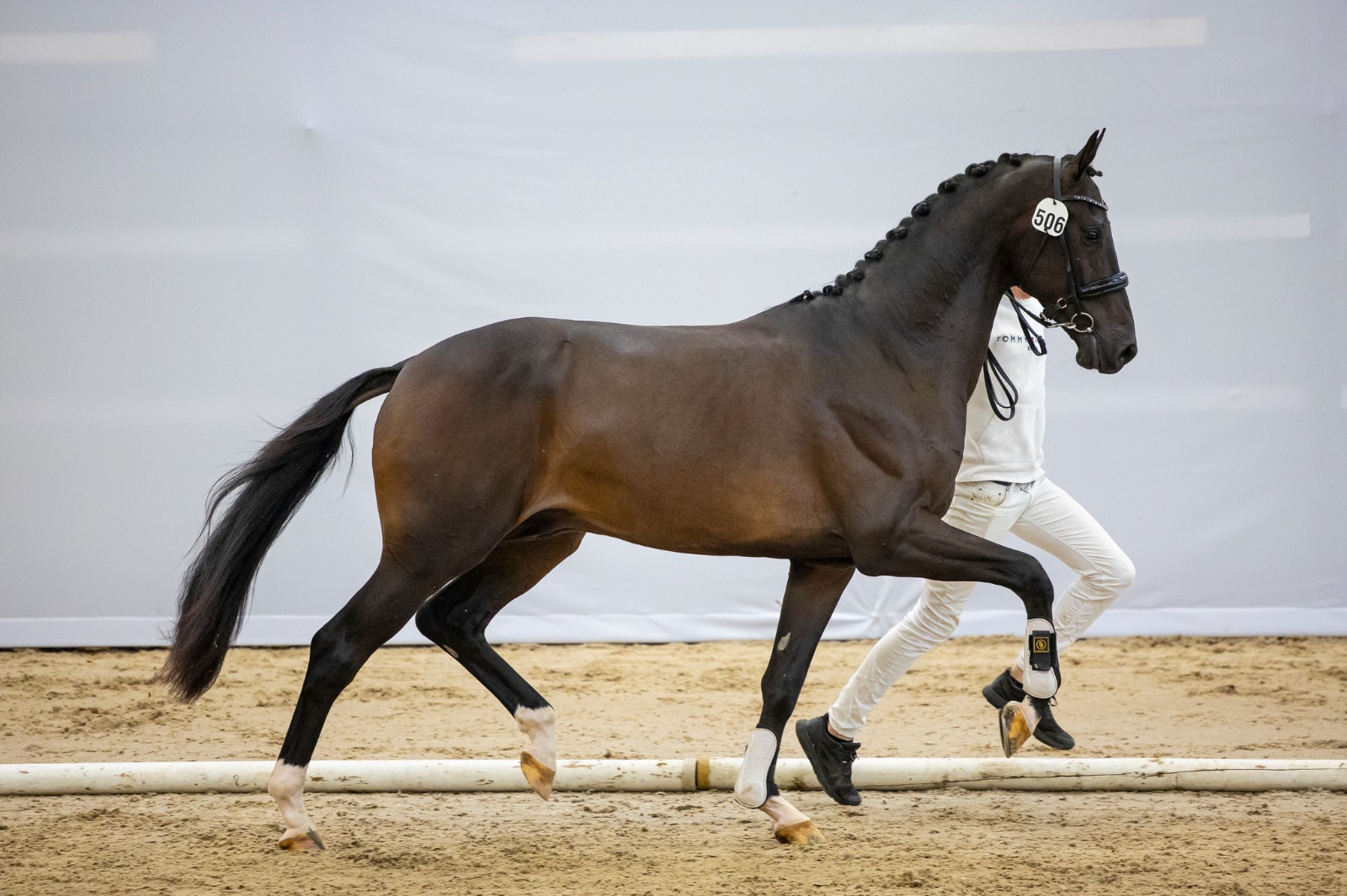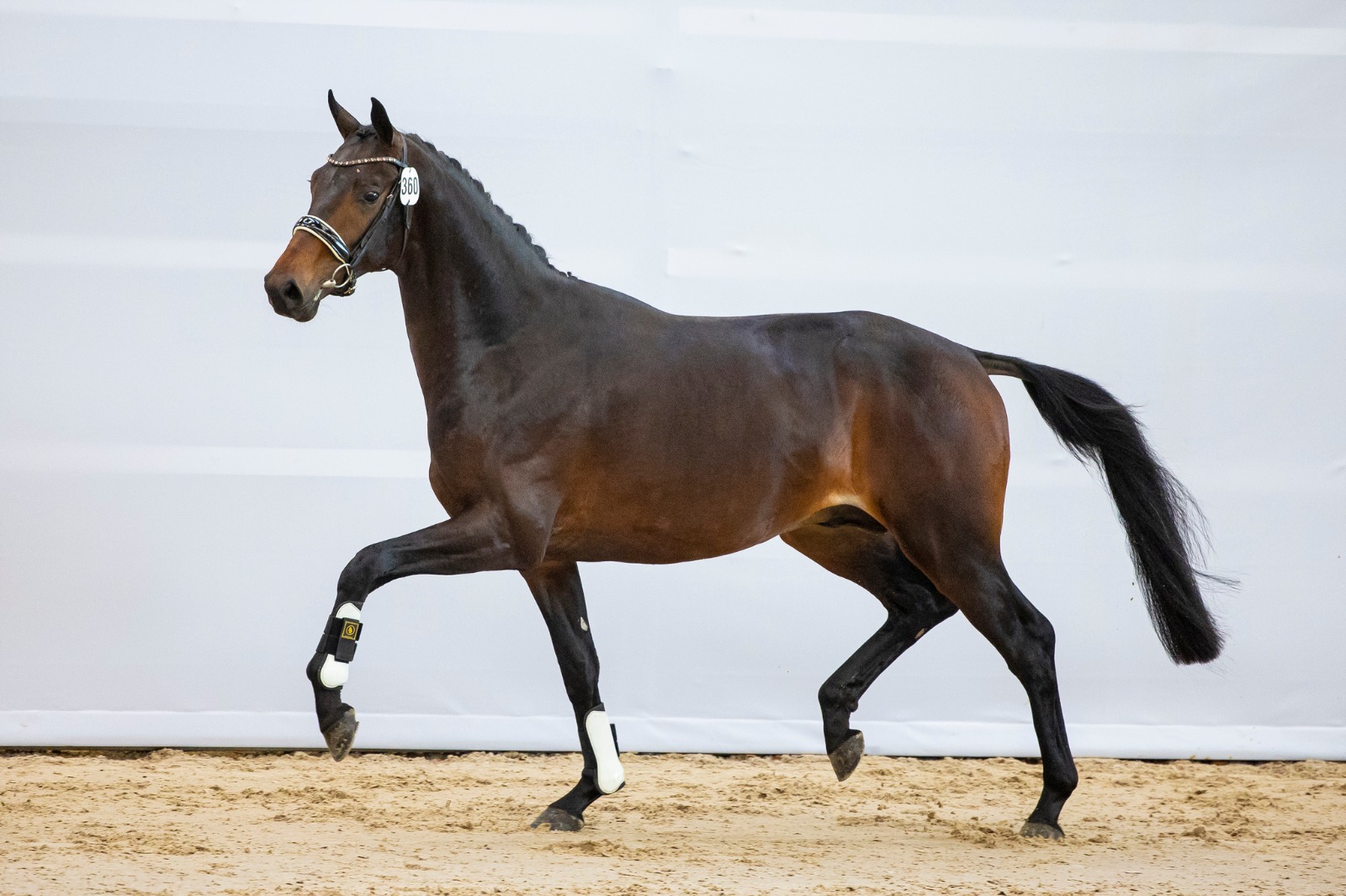 Aus unserem Stall wurden 5 Dressurpferde zur 2. Besichtigung verwiesen, darunter ein Sohn unseres Bronzemedaillengewinners Hermès. Dieser Patheon L.E., Hermès x San Remo x Formateur, aus der Zucht von Saskia und Thijs Schaap, stammt aus einem bewegungsstarken Mutterstamm, ging mit viel Schwung durch den Käfig und hinterließ einen sehr guten Eindruck.