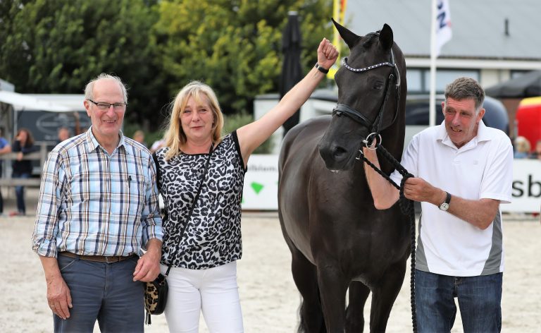 Appie Dijkstra uit Opende heeft al heel wat regionale toppers op keuringen gehad maar tot vandaag nog nooit een Nationaal Kampioen. Na vandaag staat hij te boek als fokker van twee Nationale Kampioenen. Nadat ORISTO, uit onze hengstencombinatie High Five x Vivaldi de veulentitel pakte, won de driejarige merrie LOLANA uit onze hengstencombinatie Galaxie x Vivaldi de koninginnenrubriek in Ermelo op de Nationale Merriekeuring, die voor de driejarige dressuurmerries. Een prachtig succes voor L.een van der Graaf en Yvonne van Vliet uit Brandwijk.