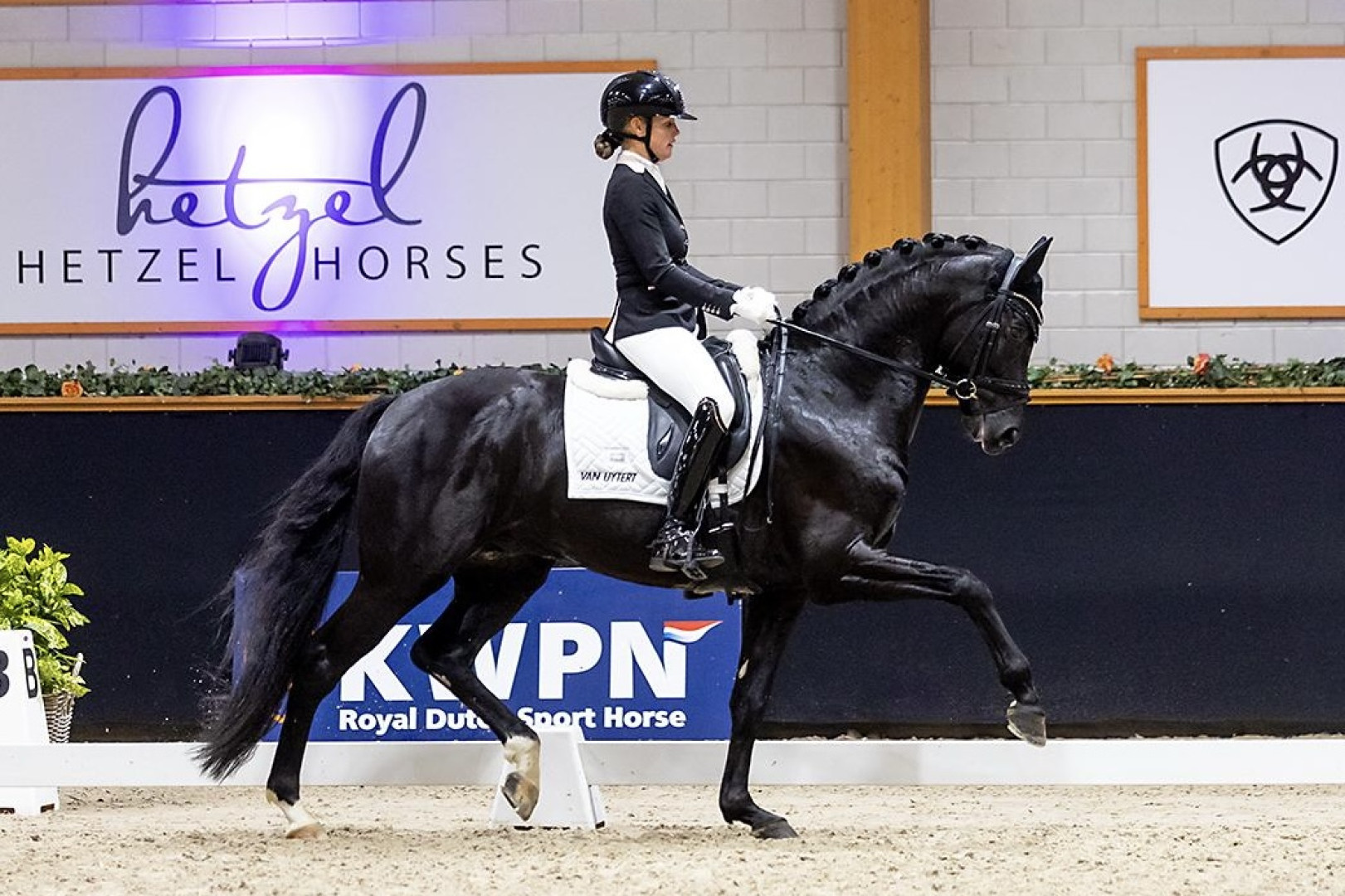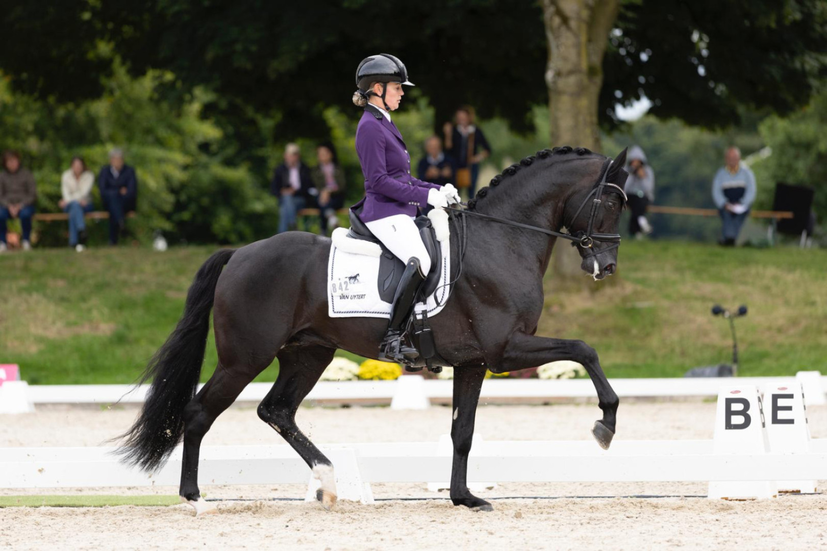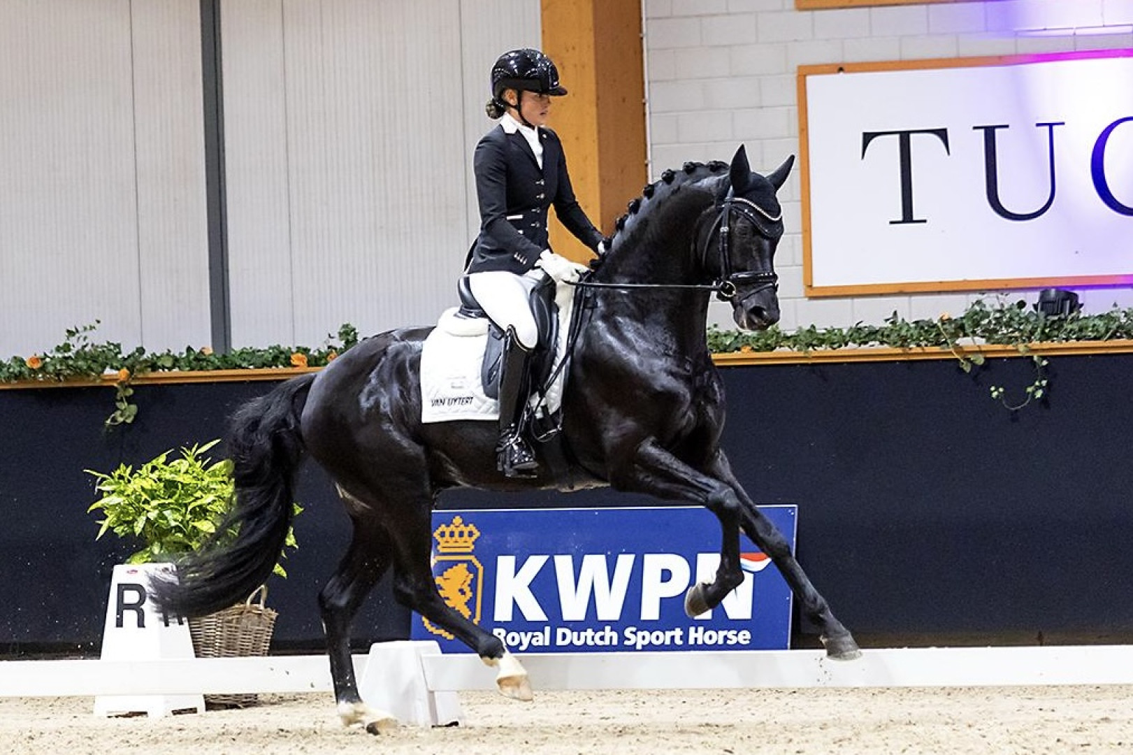 Anfang 2024 hatten sie auch gemeinsam mega Werbung gemacht. Dieses Talent hat sich 2023 unter Gerrel Vink enorm gut entwickelt, und was für einen fantastischen Auftritt hatte er im VSN-Finale. Schon in der Vorrunde erhielt er eine 9,5 für Trab - 9,5 Galopp - 7,8 Schritt - 9,0 für den Gesamteindruck. Auch sein erster Auftritt in einer Jungpferdeprüfung war ein Volltreffer. Beim Equisport Cup wurde er Dritter bei den 3-jährigen Dressurpferden mit einer ebenfalls fantastischen Note von 86,2%. Beschreibung Pferde; Dritter wurde der von Gerrel Vink gerittene Lambourghini U.S. (Lord Europe x Sir Donnerhall ). „Dieser Hengst hat viel Haltung, tritt rein und aktiv, war gut geschlossen im Trab mit viel Vorhandtechnik und sprang im Galopp mit dem Widerrist nach oben. Um eine höhere Platzierung zu erreichen, hätte er jedoch ein wenig ruhiger in der Anlehnung sein müssen“, so die Richter.