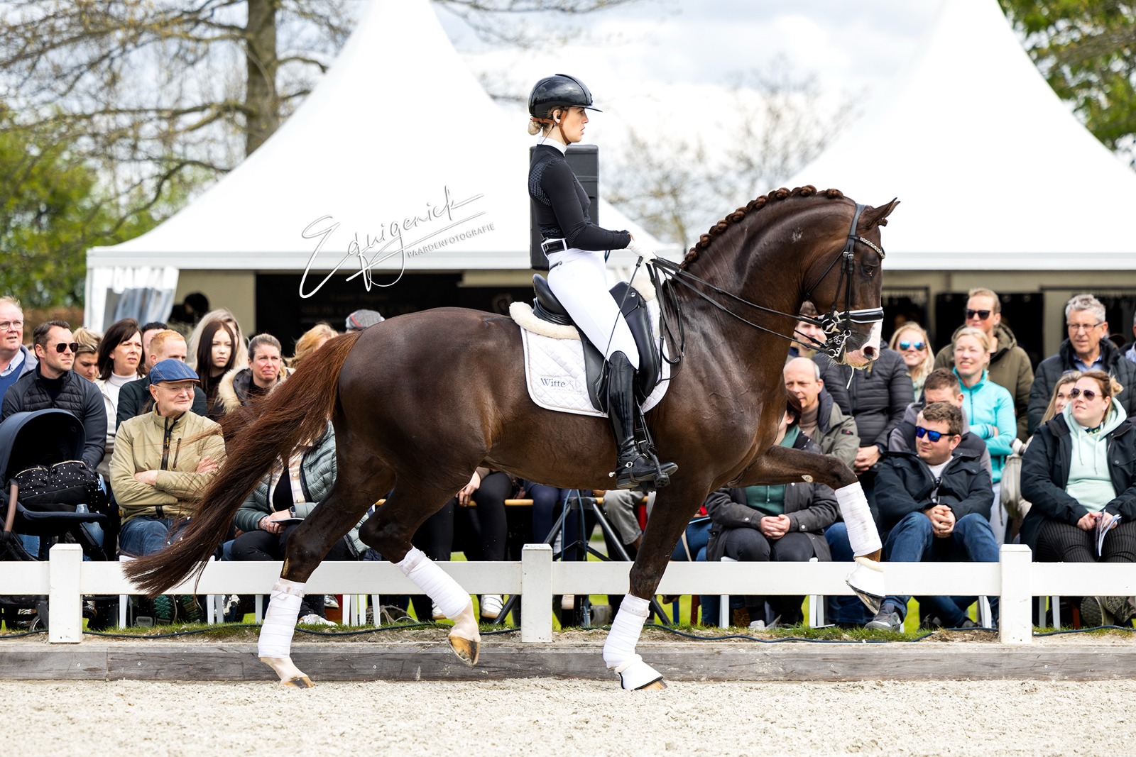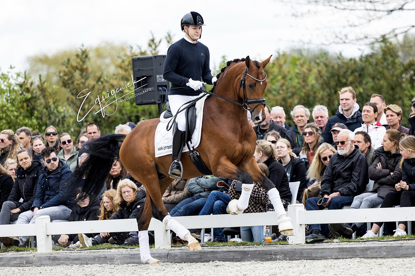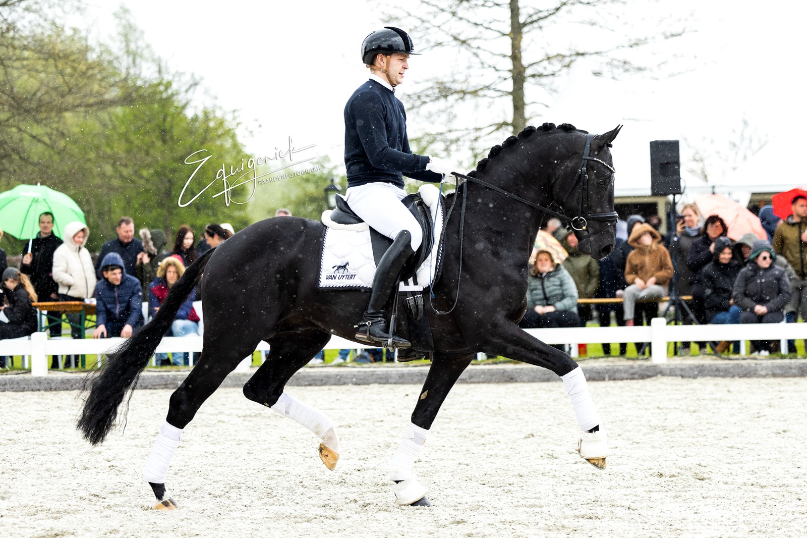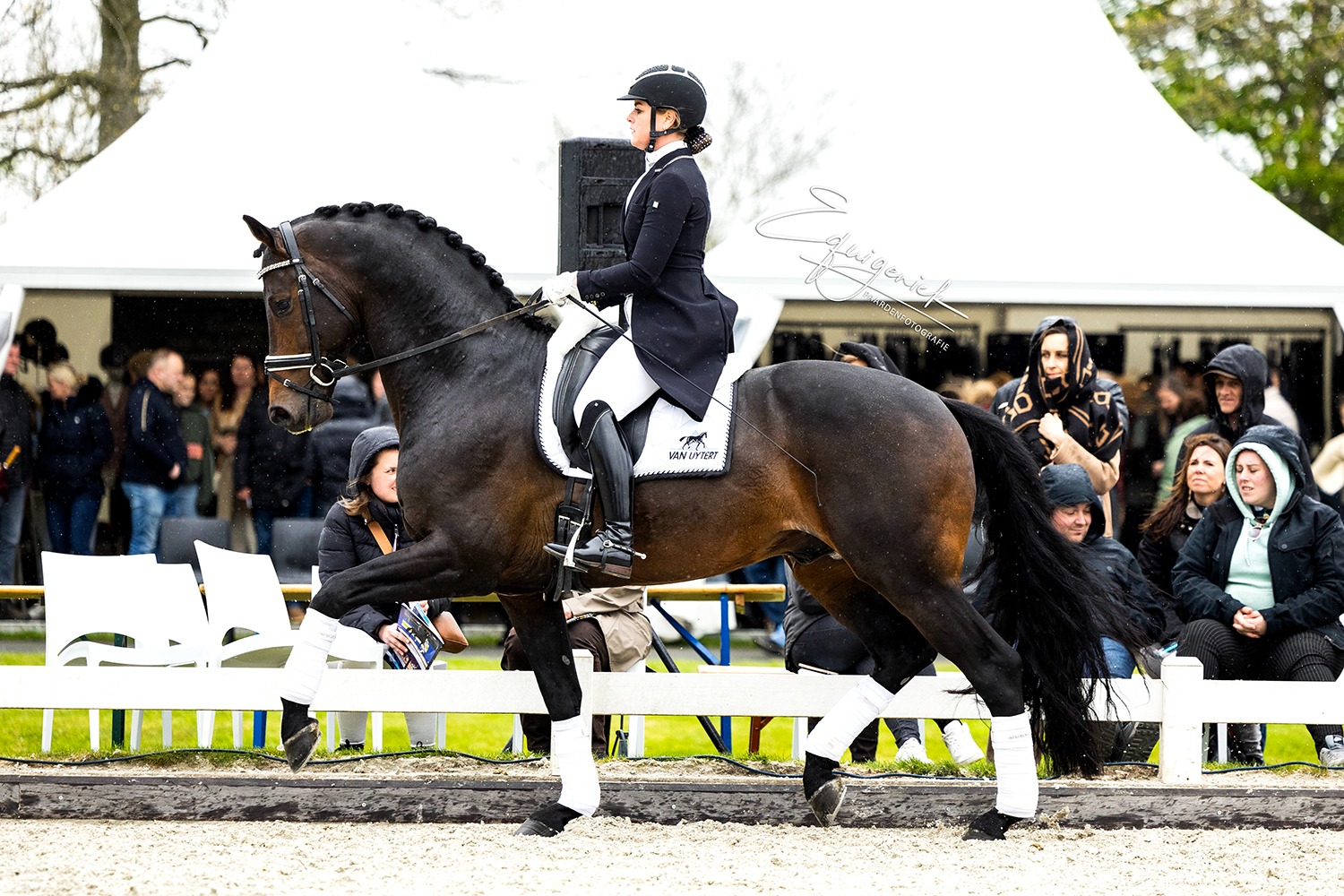 We started our Show at 2:05 PM with beautiful weather. It was truly a wonderful Show with many highlights. See the whole series of photos :). The planning was until about 5:00 PM, unfortunately the rain came half an hour too early, so we couldn't show our group of older stallions. These toppers naturally deserve to be put in the spotlight. Bordeaux - Diarado - Easy Game - Emir R - Spielberg - United - Vivaldi. Many of these stallions were later viewed in the indoor arena by many enthusiastic breeders.