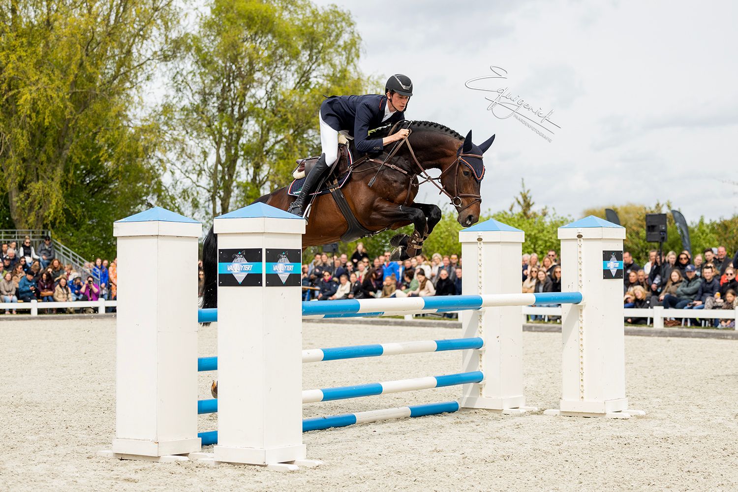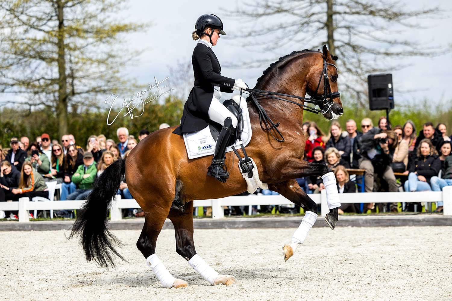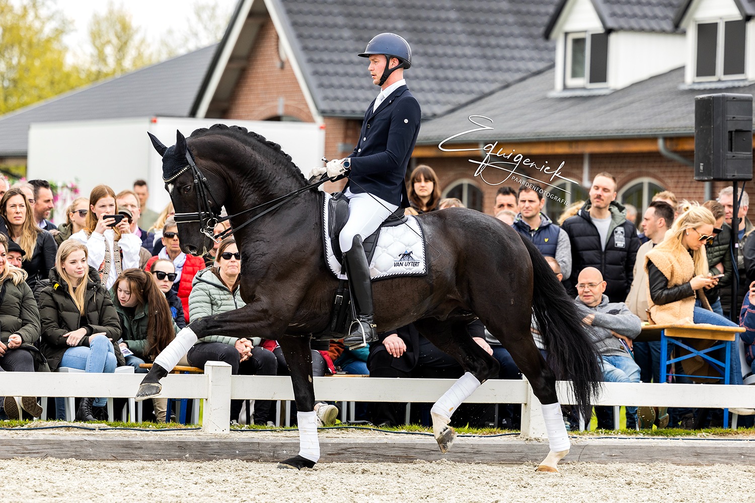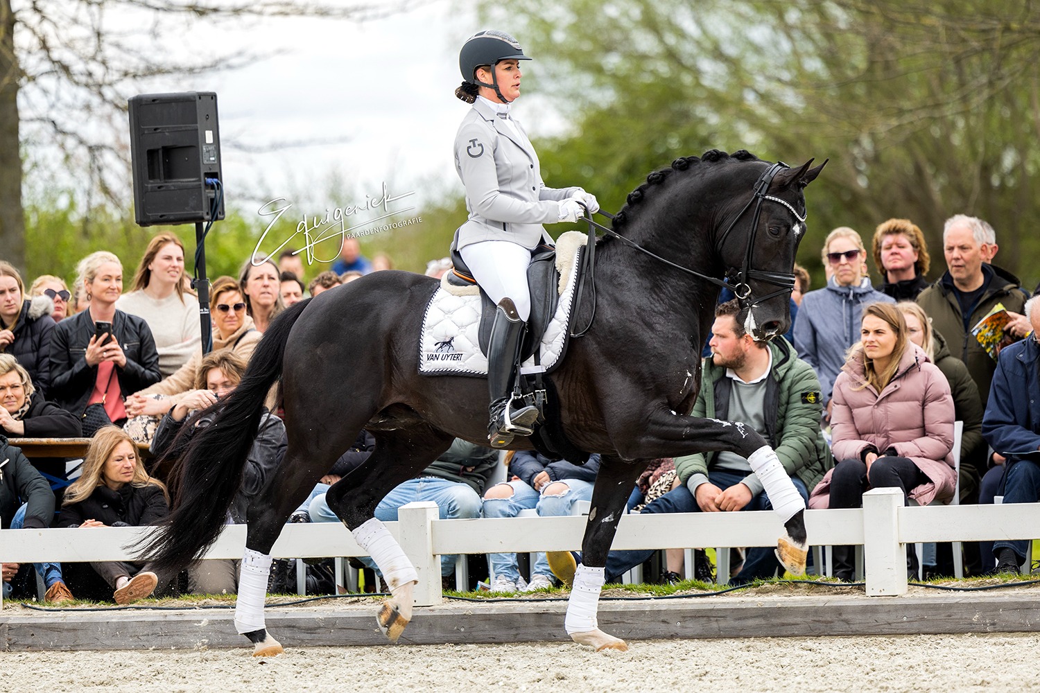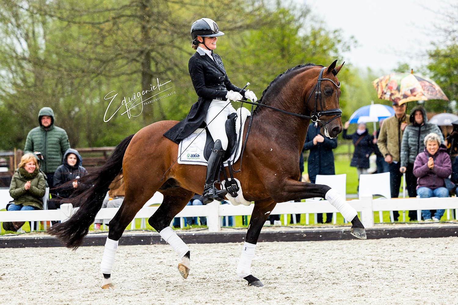 We started our Show at 2:05 PM with beautiful weather. It was truly a wonderful Show with many highlights. See the whole series of photos :). The planning was until about 5:00 PM, unfortunately the rain came half an hour too early, so we couldn't show our group of older stallions. These toppers naturally deserve to be put in the spotlight. Bordeaux - Diarado - Easy Game - Emir R - Spielberg - United - Vivaldi. Many of these stallions were later viewed in the indoor arena by many enthusiastic breeders.