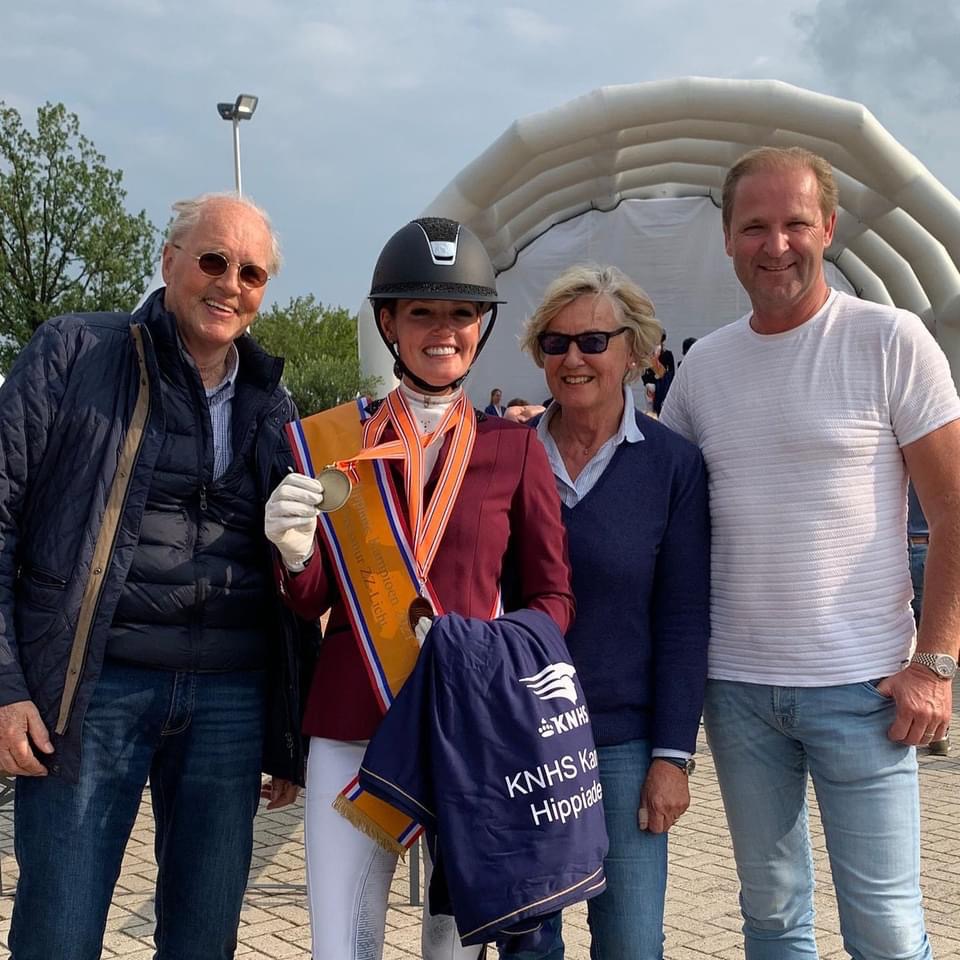 Voor de eerste keer nam Renate van Uytert – van Vliet op de Hippiade deel met 2 paarden.......en met succes. Na twee ritten met haar paarden Just Wimphof en Johnny Depp mag Renate van Uytert – van Vliet twee medailles in ontvangst nemen op Medal Plaza. Met Just Wimphof is Renate kampioen geworden in het ZZ-Licht. Maar liefst 72,238% kregen zij van de juryleden. Ze lieten een hele mooie sterke en stabiele proef zien met als hoogtepunten, de appuyementen in draf en galop en zijn zeer sterke stap waar negens voor genoteerd werden.