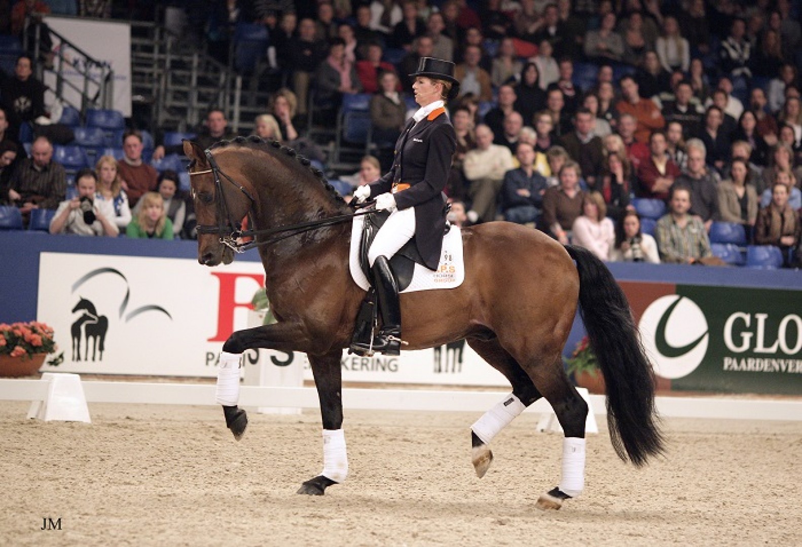 In combination with Anky van Grunsven our movement artist and ballerina won the Grand Prix's of 's-Hertogenbosch, Rotterdam, Helsinki, Oslo, Wiesbaden, Moscow, Norten Hardenberg, Mechelen and Aachen. Krack C does not only possess these fantastic movements from himself but he passes them on to his offspring. He has definitely made his mark on the Dutch Dressage Breeding. Not only has he sired 10 KWPN approved stallions, approved grandsons, many Champion mares but many contenders for the coveted Pavo Cup.