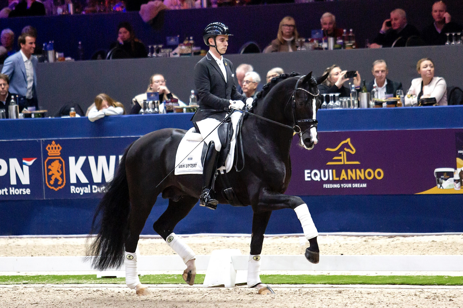 With Royal Dynamic we have really discovered a new talent for our stud. A very beautiful, very correct and long-lined stallion with a lot of stallion charisma and three very good basic gaits. He seems quite complete, has a good attitude and really wants to do his best for the rider. Renate has been riding him since the KWPN performance test and gives her a very good feeling, familiar, stable and a good desire to walk. During the hectic KWPN Stallion Show our rider Alvaro Rodriquez Siscar took over the reins and presented all our 3 young stallions there. He showed himself fantastically during this presentation of the new year. What charisma this stallion has and was also very well described by Bart Bax, chairman of the KWPN Stallion Inspection Committee.