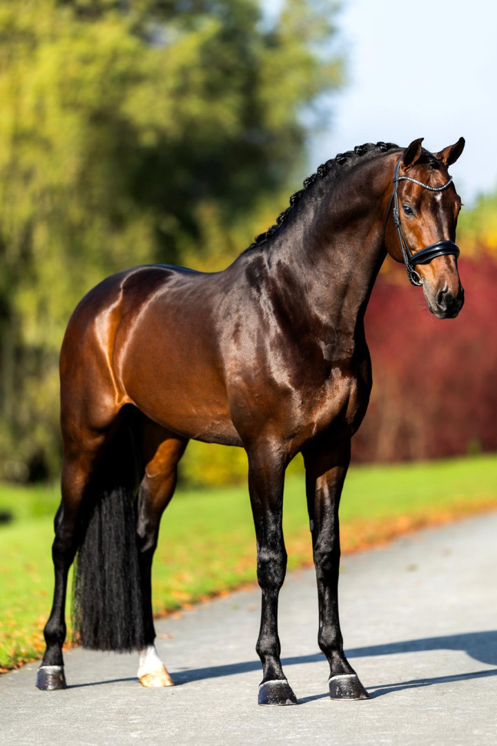 Wat een kracht heeft Blue Hors Zackerey in zijn lijf. Hij loopt met zoveel power, energie en wil maar blijven gaan. Hij heeft zeer veel techniek in zijn verruimingen in zowel draf als galop. Deze eigenschappen lijkt hij ook door te geven aan zijn nakomelingen. Wij zijn blij dat we door onze goede samenwerking met Blue Hors hebben kunnen overleggen dat door hun inkrimping in 2023 de Tophengst Blue Hors Zackerey naar ons Hengstenstation gekomen is. We hebben deze bewegingskunstenaar samen aangekocht met onze collega Stal brouwer uit Gieten. Tijdens de Oldenburger Hengsttage 2018 werd hij beschreven als beste hengst van de gehele keuring en veroverde dan ook unaniem de prestigieuze Hauptprämien 2018. Deze geweldenaar ontpopte zich reeds tijdens de Oldenburger Hengstenkeuring 2016 als absolute bewegingsgigant. Zackerey is een prachtige verschijning, die qua type, beweging, afstamming en prestaties iedereen weet te overtuigen. Ook in Denemarken werd Zackerey met open armen ontvangen; hetgeen resulteerde in een premie tijdens de hengstenkeuring 2017, een Gouden medaille tijdens de Hengstenkeuring 2018, de reservetitel tijdens het Deense Kampioenschap voor 4-jarige dressuurpaarden met een score van 9.46 pnt - aanleg 9.8 - galop 9.5 - draf en instelling 8.8. Ook in de fokkerij drukt Zackerey zijn stempel. Zijn eerste excellente jaargang presenteerde hij in 2018, waarbij hij zowel in Vechta als in Luhmühlen de veilingtoppers bracht. In 2020 heeft hij zijn eerste zonen op de diverse keuringen door Duitsland goedgekeurd, waaronder zijn bekende zoon Zico.