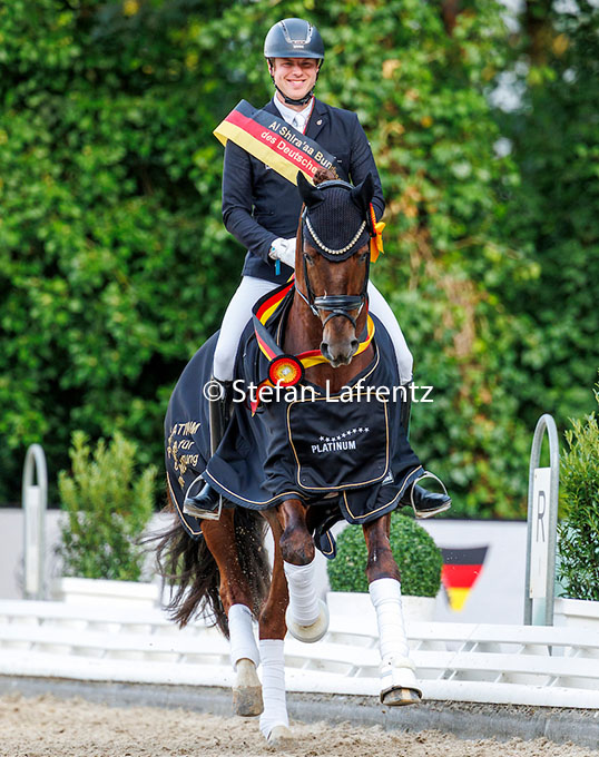 Lord Europe levert de KAMPIOEN van de 5-jarigen met Lodovico. Hij is gefokt door Wieghaus-Vorwerk GbR en werd gereden door Lena Hassmann.