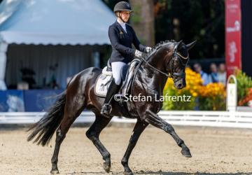 3e plaats en BRONS in de kwalificatie én in de finale: Louis Löwenherz von Bellin v. onze hengst Lord Europe. Gefokt door Dr. Kerstin Klieber en gereden door Leonie Richter.