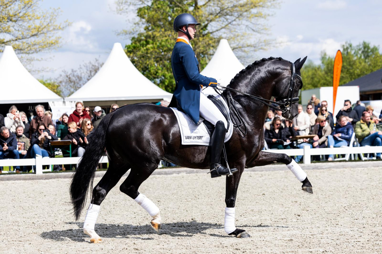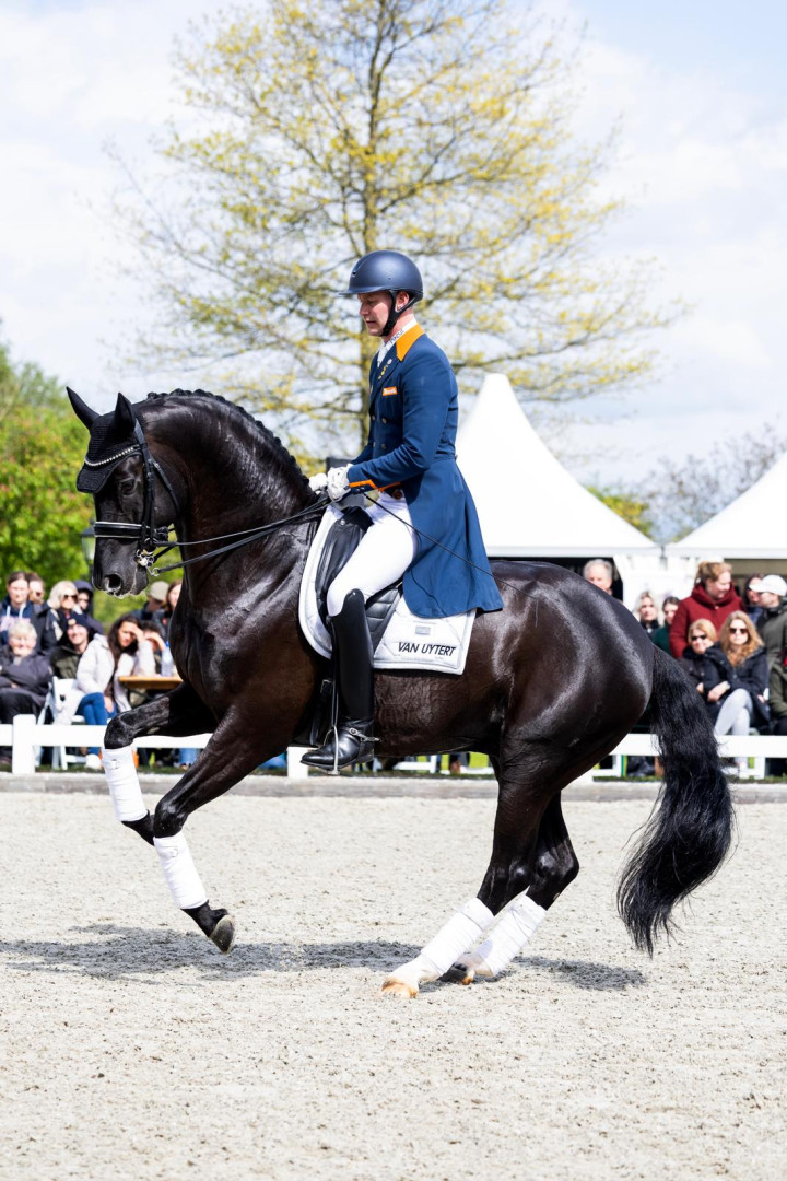 In Februari 2024 - net 8-jarig - heeft Diederik van Silfhout ons toptalent Dante U.S. intermediaire II gestart en direct gewonnen met een prachtige score van 72.255%. Hiermee werden ze op de Long List gezet voor de Olympische Spelen. We wisten dat nog wel erg vroeg was, maar de aanmeldingen moesten in maart al bij de FEI zijn. Hun 2e Intermediare II-proef was tijdens de K&U wedstrijd in Schijndel, ook deze wisten ze te winnen met een score van 70.54%. Hun Grand Prix-debuut hebben ze gemaakt in Reuver tijdens de K&U wedstrijd met een score van 68.73%. In Mei hebben ze hun 1e internationale start in Exloo gemaakt, Grand Prix (68.13%) en de Grand prix Special (67.72%). Hierna hebben we besloten om Dante U.S. rust te geven en volledig te concentreren op het dekseizoen, omdat het allemaal erg snel gegaan was. Na het seizoen is Diederik Dante U.S. weer heel rustig gaan opbouwen, hem sterker maken en gewerkt aan zijn piaffe en passge die nu al weer veel beter ontwikkeld zijn. In het voorjaar van 2025 gaat hij hem weer uitbrengen in de Grand Prix en kijken met veel verwachting uit naar zijn gemaakte ontwikkelingen.