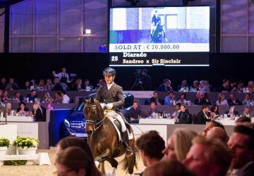 Onder toeziend oog van vijfhonderd gasten werden maar liefst 36 paarden geveild bij Academy Bartels in Hooge Mierde. Het duurste paard dat onder de hamer van veilingmeester Koen Olaerts kwam is San Diamantino, een 8-jarige ruin van San Amour x Diamond Hit. Hij werd voor 250.000 euro gekocht door twee Duitsers.