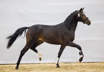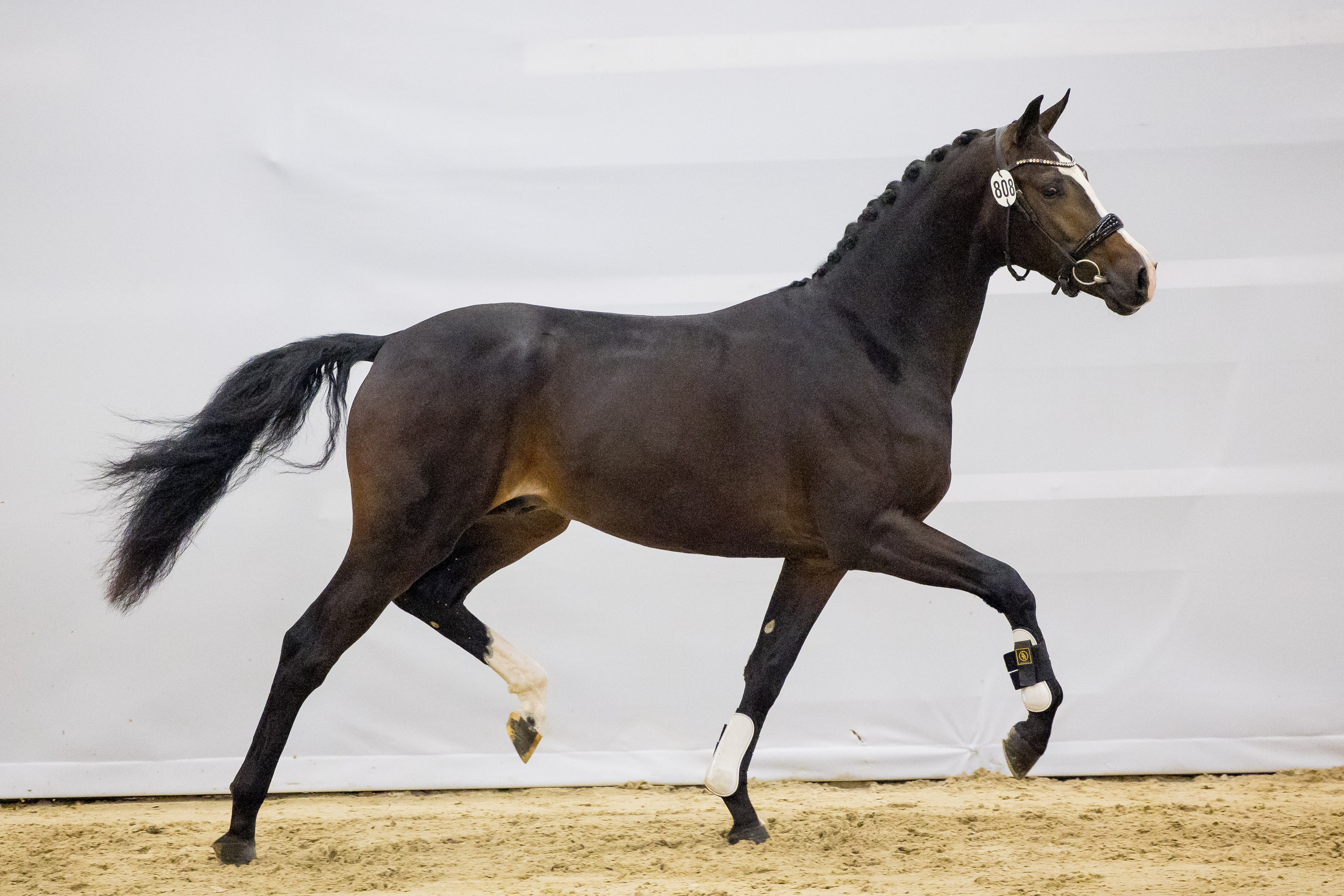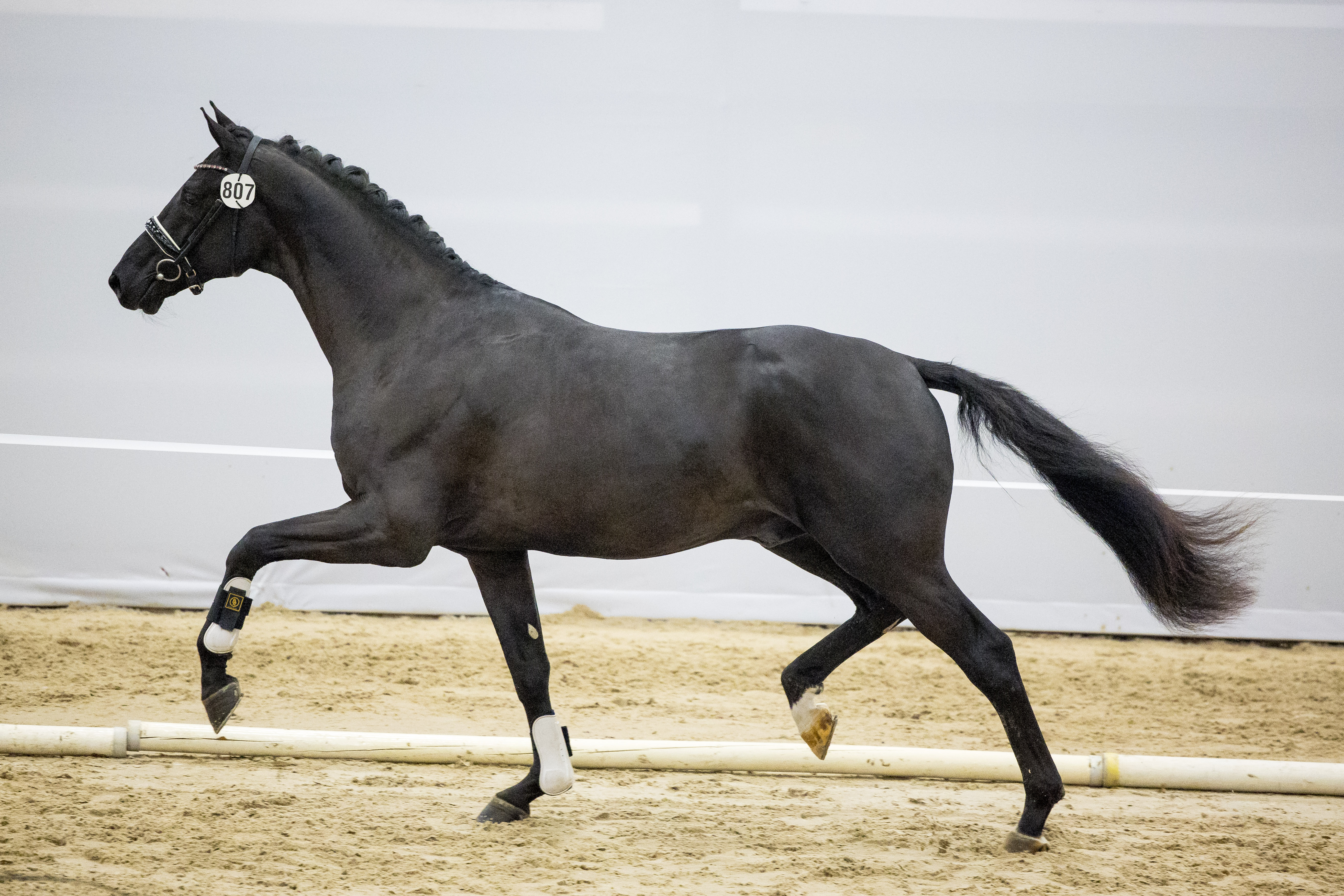 De nakeuring van de eerste bezichtiging leverde ook een mooie uitslag doorverwezen hengsten op. De Johnny Depp-zoon Papillon PM (Catnr. 808 Johnny Depp x Florencio x Cabochon), gefokt door M. Terhurne en in eigendom van J. Anker, liet zich goed zien. Hij is nog erg jeugdig, maar maakt zich groot in zijn bewegingen en liep fijn door de baan. Daarnaast kreeg de reeds bij het Hannover goedgekeurde zoon van Glamourdale (catnr. 807 Glamourdale x Londonderry x Fuerst Heinrich) ook een doorverwijzing. Hij heeft een fantastisch model, een prachtig zwarte kleur en draaft met zeer veel tact en souplesse. Deze talentvolle hengst hebben we samen voorgesteld met onze Deense partner Blue Hors.