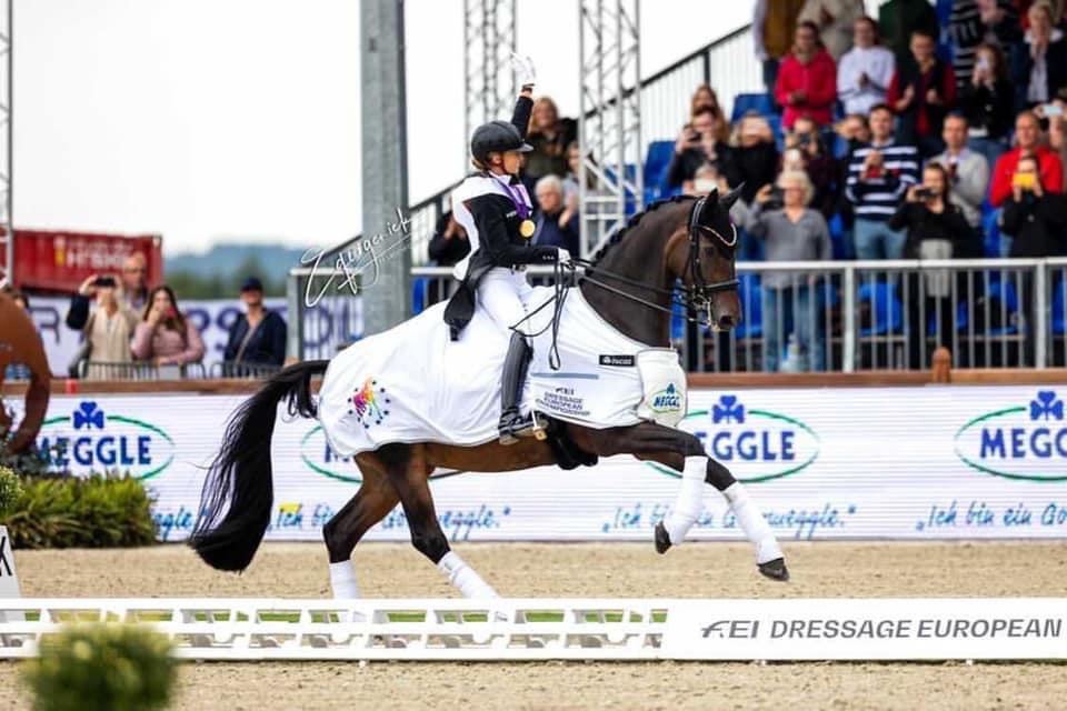 Na de teleurstelling in Tokio, twee keer net geen medaille, gaat Cathrine Dufour vanuit Hagen met Bohemian van onze hengst Bordeaux naar huis met drie medailles. De bronzen teammedaille, brons uit de Spécial en een zilveren uit de kür. Met 88,436% laten Cathtine Dufour en Bohomian een prachtige proeg zien met geweldige piaffe en passagelijnen.