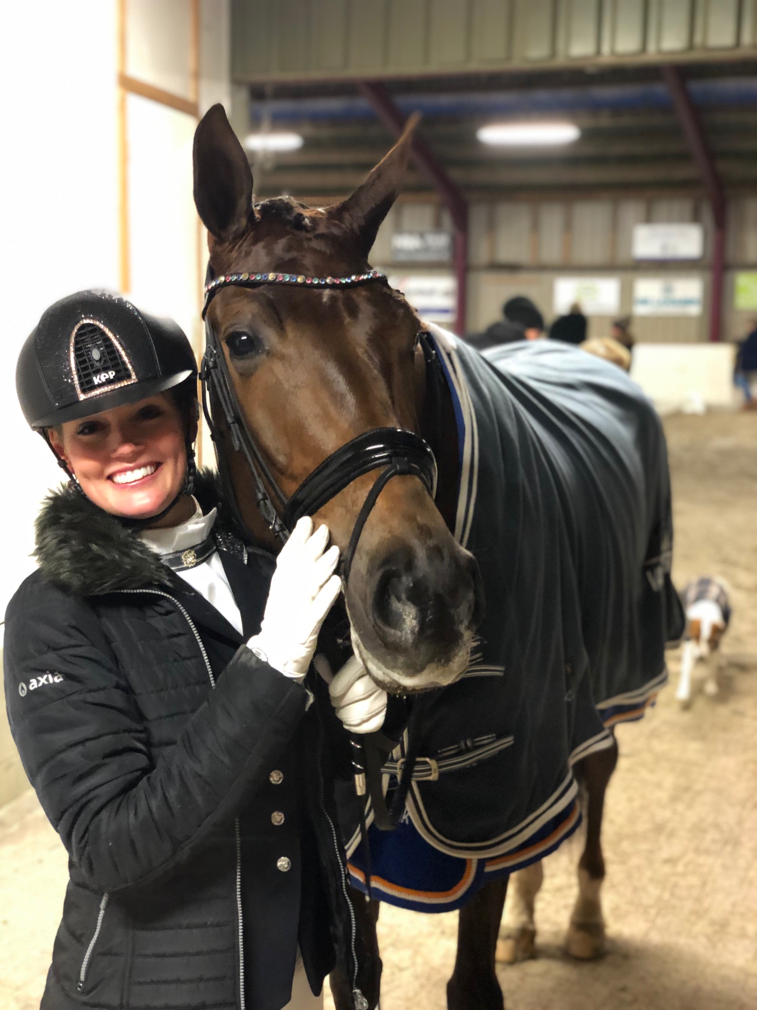 Met een topscore van 87.5 was onze Galaxie-dochter Katniss één van de merries die geen twijfel liet bestaan over haar aanleg als dressuurpaard. Het juryduo Bart Bax en Toine Hoefs kreeg 37 merries te beoordelen, waarvan er 28 met het IBOP-predicaat huiswaarts konden keren. Onze driejarige Katniss (Galaxie uit Haya-Strona van Charmeur) gefokt door Joop van Uytert en zijn Familie Van Vliet leverde onder Renate van Uytert-van Vliet een zeer overtuigende verrichting. “Dit is een hele speciale merrie! Ze blinkt uit met haar zelfhouding, bergopwaartse manier van bewegen en goede gebruik van het achterbeen waarmee ze steeds mooi blijft aanvullen. Ze beweegt met veel afdruk, tact en schakelvermogen, echt een beter paard!”, looft Bart Bax de merrie. “Na de stamboekkeuring, waar ze 80/85 verdiende, is ze zich heel goed blijven doorontwikkelen. Voor de draf, galop en aanleg hebben we haar een negen gegeven en voor de houding & balans zelfs een 9.5!”